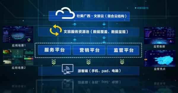升級迭代后的“一云一池三平臺”,實現(xiàn)了文旅系統(tǒng)數(shù)據(jù)治理、公共服務、管理運營的三端合一。這一系統(tǒng)構建起“1+1+3+N”數(shù)字化改革體系,建成服務端、治理端、營銷端56個應用場景,推動廣西文旅實現(xiàn)從前端服務到后端管理的流程再造與系統(tǒng)重塑。